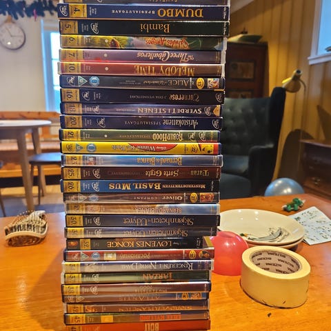 Selger en stor pakke med klassiske Disney-filmer på DVD.