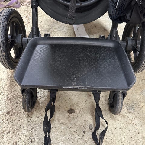 Søskenbarnet til å feste på barnevognen, buggyboard, pent og lite brukt til ett barn