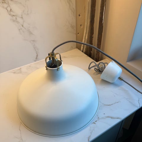 Selger en stilren og moderne bordlampe i sort metall med geometrisk / industrielt design. Lampen er pent brukt og fungerer helt som den skal. Lyspære medfølger, så den er klar til bruk.