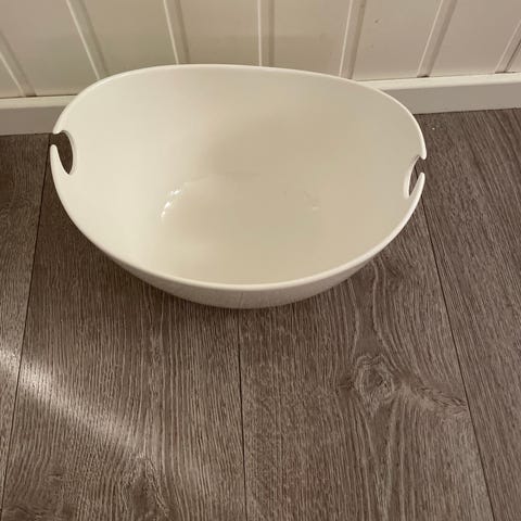 Pent brukt salatbolle med bestikk, i plast. Hentes på Ellingsrud i Oslo
