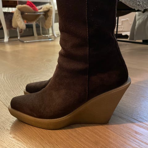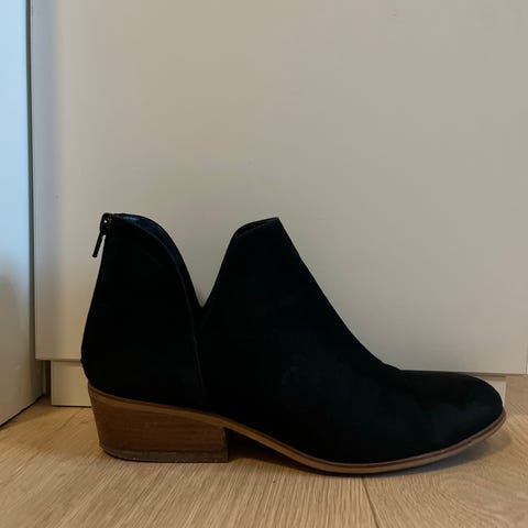 Selger disse kule høye hælene fra New Look, da de bare står i skapet og ikke blir brukt. Høyde ca. 9 cm. Veldig stabile og gode å gå i. I svart velour😊