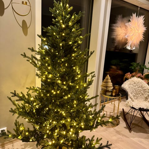 Northern Winterland Cervina juletre med lys, 180 cm høyt, grønt. Treet har myke nåler og er utstyrt med varme hvite lys. Inkluderer fot for stabil oppstilling selges for 400,-