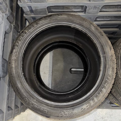Dekkmønster ca 5mm, litt mere slitt på kanter på to av de. Originaldekk fra E-tron.