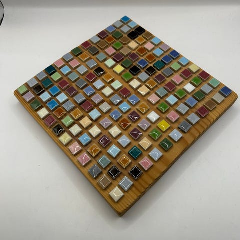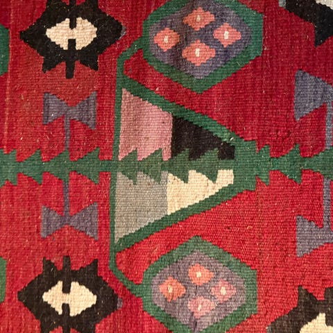 Malt hylle av tre. Rød plastinnsats med flere rom til mel og krydder. Alle skuffene er hele. Trenger et strøk med maling. Jeg fikk dessverre ikke plass til den selv