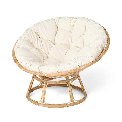 Rottingstol som er hel og pen, puten ville jeg investert i ny da fyllet og puten i seg selv er veldig godt brukt. Denne kan du kjøpe individuelt på granit.no. Stolen med pute koster ny 3000kr.