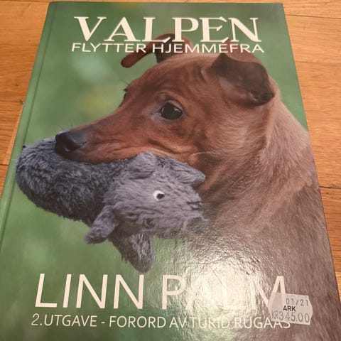 Linn Palm Valpen Flytter Hjemmefra bok. Inneholder informasjon og veiledning om valper og deres tilvenning til nytt hjem.