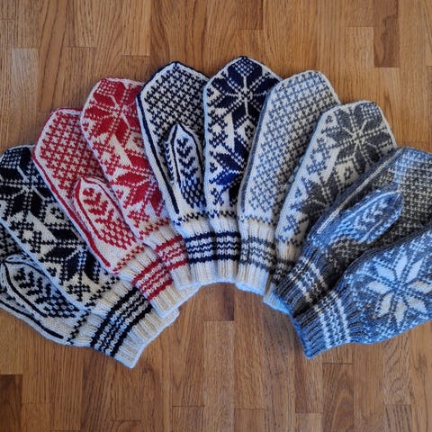 Strikkebok som inneholder oppskrifter på ulike klær og tilbehør, inkludert gensere, kjoler og topper for damer og barn. Boken gir detaljerte instruksjoner for strikking av plagg i forskjellige farger og mønstre, med fokus på bruk av ulike garn og teknikker.