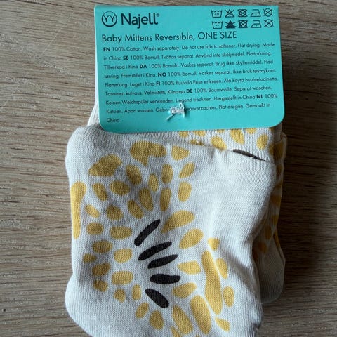 Najell sko og votter til baby 0-6 mnd selges. Kun brukt én gang.