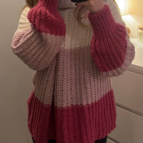 Grå strikkegenser med perledetaljer fra Reserved selges.