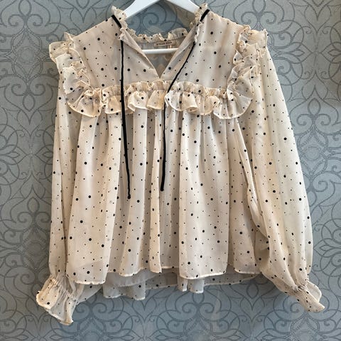 STELLA NOVA bluse i størrelse S, beige farge og laget av bomull. Blusen har knappelukking og lange ermer med mansjetter. Egnet for kvinner.