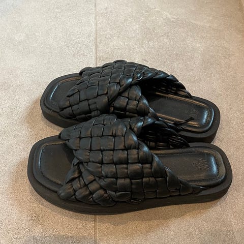 Sandaler størrelse 38 svart skinn med flettet detalj