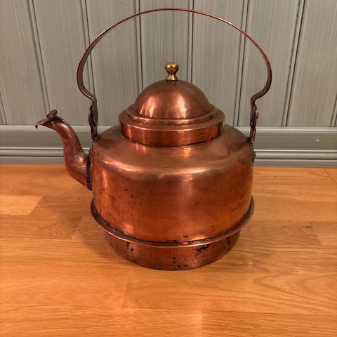 Kobberkjele laget av kobber med lokk og håndtak. Nydelig til dekor enten hjemme eller på hytta