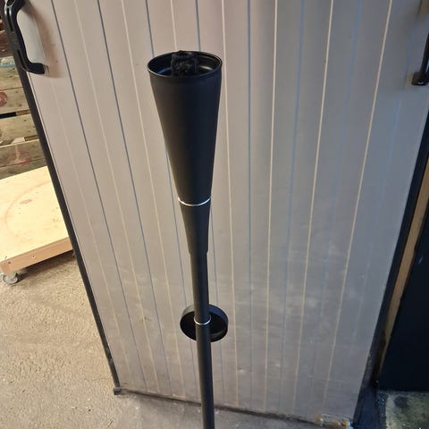- Spydet settes ned i bakken og gjør at fakkelen står støtt.