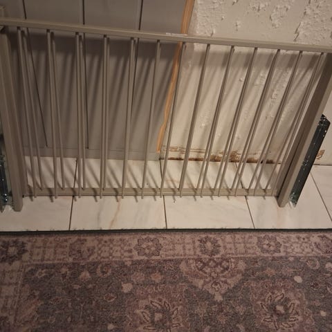 Beige nettingkurverer med tilhørende skinner . Dimensjonene er på bildene