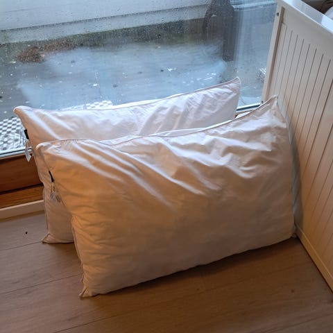 2 stk hotellputer med hvitt putevar. selges samlet for 300kr.