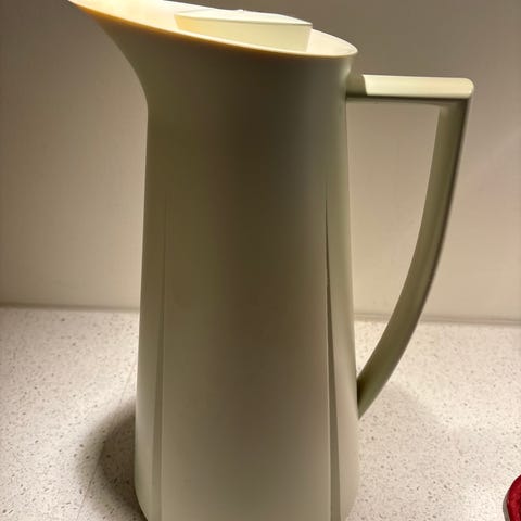 Termokannen er i veldig god stand, men har fått seg en liten trykk i kanten foran. Se bildene.
