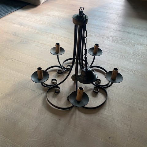 Størrelsen på taklampen er ca 75 cm i diameter, 55 cm høyde på selve lampen, total høyde slik den henger - ca 110 cm.