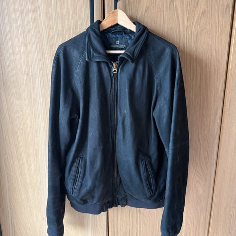 Scotch & Soda jakke i størrelse XL, laget av svart skinn. Jakken har hette og flere lommer. Innvendig fôr med motiv som viser en motorsykkel og teksten "bikers on the road". Egnet for utendørs bruk.