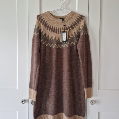 Selger en stilig og komfortabel strikket cardigan fra Esmara med geometrisk mønster i fine høstfarger (svart, beige, brun, rust og sennepsgul). Cardiganen har åpen front med bred ribbestrikket kant og lange ermer. Myk og behagelig – perfekt som et ekstra lag til hverdagsbruk.