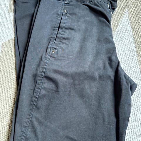 Skiller seg ut med tøffe mc knær, lavt liv og røff-feminin stil. Kjøpt for mange år siden på Vincci, Bergen. Etter flere (skånsomme) vask har den naturlig nok endret litt farge nyanse, som ny var den heller ikke helt sort. Den er litt sånn varm sort jeansaktig. Ingen skader, fin brukstilstand. Se bilder.