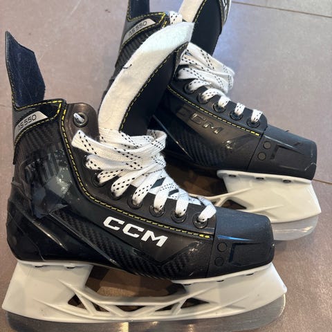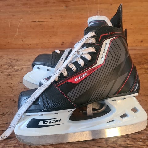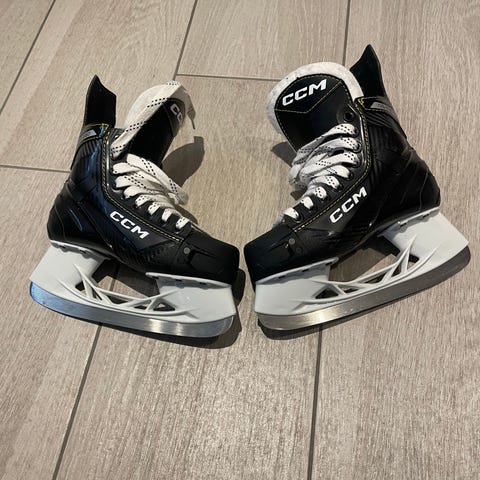 CCM Tacks ishockeyskøyter for barn i størrelse 36. Skøytene er designet for ishockey og har svart farge med hvite lisser og detaljer.