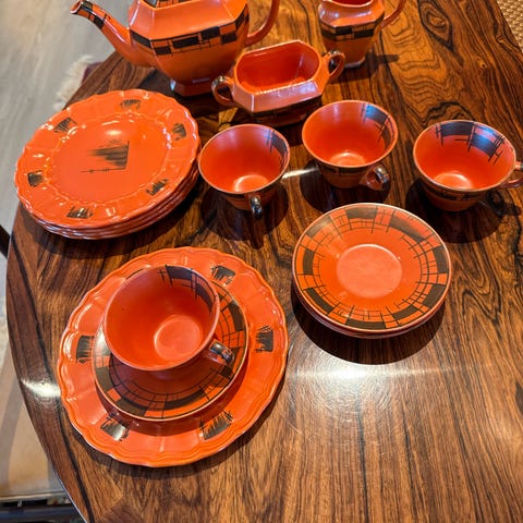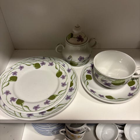 Eschenbach Bavaria Servise. 8 hele sett med sukker/fløtemugge. En kopp og et par fat og underskåler med skår