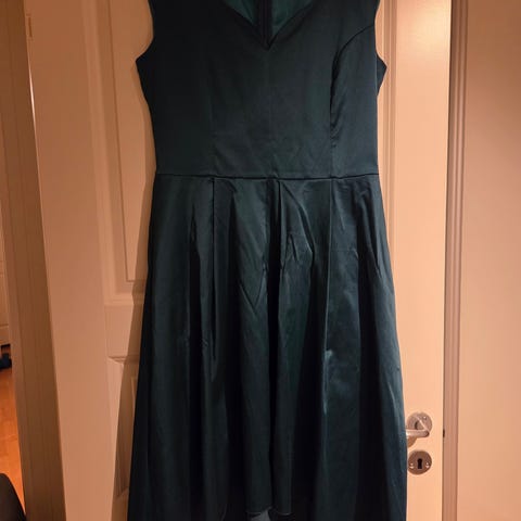 Lekker kjole med fløyels knapper nesten helt ned. Brukt 1 gang og fikk mye positive tilbakemeldinger. Dessverre for liten. Kr 500 pluss frakt