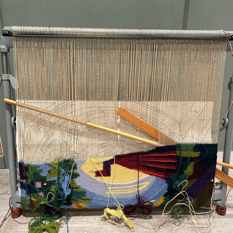 Treverk garnvinde laget i tre. Brukes til oppvikling av garn. Har mekanisme for å justere og holde garnet på plass under oppviklingen. Må hentes.