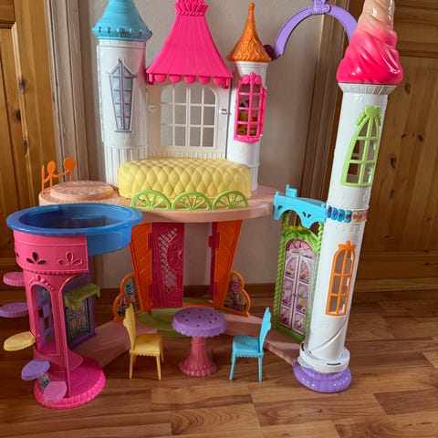 Prinsesse hus med 4 hester og prinsesse vogn (mangler en dør) -350kr