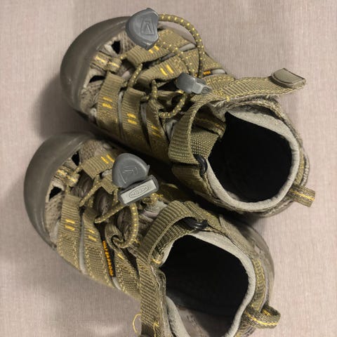 De er pent brukt én sommer, men har fortsatt mye bruk igjen. Helt supre tursandaler som tåler både vann og vaskemaskin. Kan varmt anbefale disse – fantastisk kvalitet!