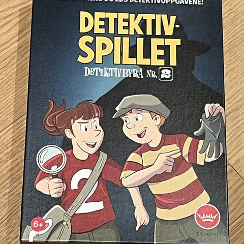 Detektivbyrå Nr. 2 Detektivspillet er et brettspill som utfordrer spillere til å finne spor og løse detektivoppgaver. Spillet inneholder ulike oppgavekort, brett og spillebrikker, og passer for barn fra 6 år og oppover. Mangler 2 støtter til spillerbrikkene men, går ikke utover bruk.