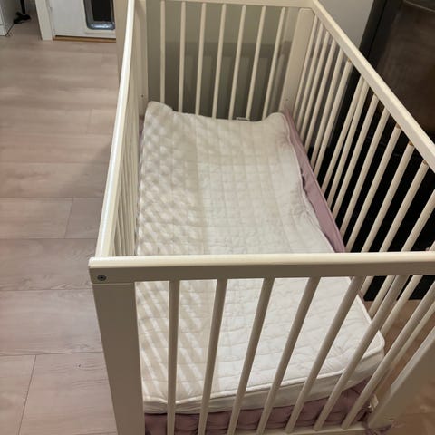 Følger med en enkel madrass på størrelse med en normal sprinkelseng