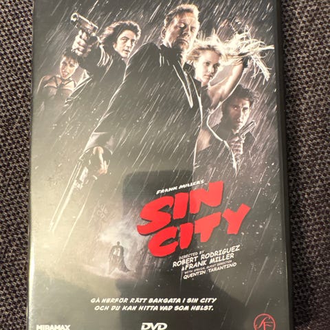Dimension Films Sin City DVD med originalt filmmateriale. Inneholder flere scener og dialoger i tillegg til hovedfilmen. DVD-en har norsk tekst og er i standard DVD-format.