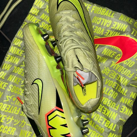 Nike Tiempo fotballsko i størrelse 42. Skoene er svarte med hvite detaljer og har innendørs såle. Laget for fotballspill, egnet for innendørs bruk.