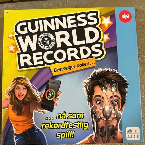 Alga Guinness World Records brettspill med tema basert på verdensrekorder. Inneholder over 600 Guinness verdensrekorder og mer enn 20 forskjellige utfordringer. Spill for underholdning og kunnskapsformidling. Nypris 479,-