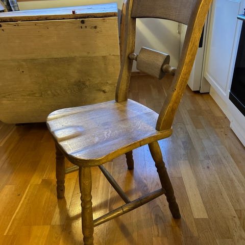 Solide stoler lite brukt, da det har vært ekstra stoler, minimalt med bruksmerker. Ingen slark. Sittehøyde 46 cm. Pris per stk kr 200.