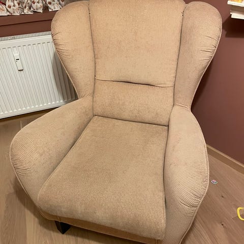 Svak rosafarge. Sittepute kan tas av og vaskes. Sittehøyde er 44 cm. Passer de som ikke vil sitte for laft. Mørkt treverk. Fast sittekomfort. Stolene er på Gvarv i Midt- Telemark. Hentes etter avtale.
