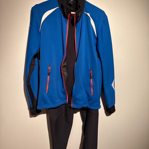 Bjørn Dæhlie Jardar langrennsdress i blå og svart farge. Dressen består av jakke med glidelås og bukse, designet for langrenn. Materialet er elastisk og tilpasset for bevegelse under trening og konkurranse. Det er størrelse 14, og har blitt brukt 1 til 3 ganger.