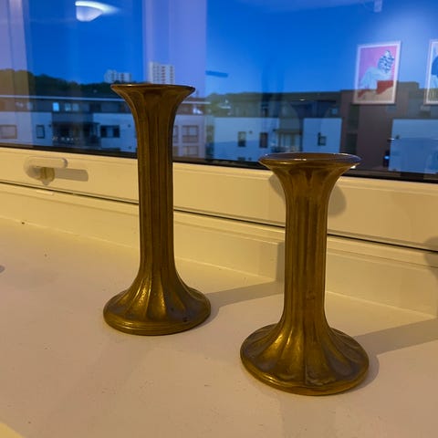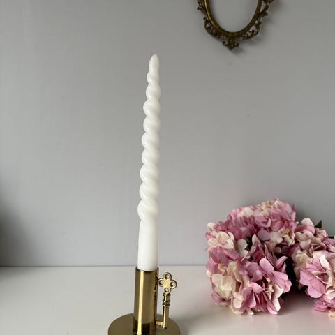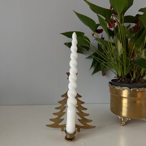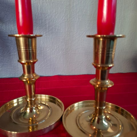 Vintage kammerstake/lysestake i messing. H: 10 cm O: 15,5 cm. Naturlig patina og bruksmerker kan forekomme. Søkeord:vintage, retro, lysestake, messing,stue,interiør,dekor,dekorasjon,julepynt,julegave,julestemning,jul