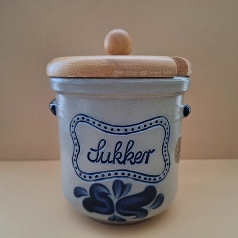 Hvit og blå - håndmalte blomster. Laget av keramikk. Ikke signert. Absolutt skadefri.