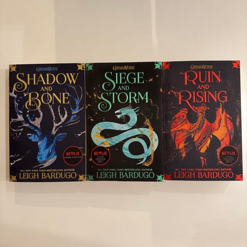 Shadow and Bone trilogien av Leigh Bardugo. Nye og uleste, og i perfekt tilstand. Paperbacks og på engelsk.
