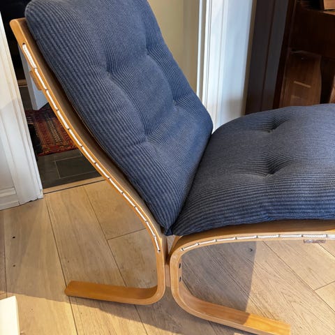 Har 2 stk ullputer til lav Siesta stol. Putene (blå stripet) er i meget god stand uten slitasje, skader eller feil - se bilder. God spenst😊