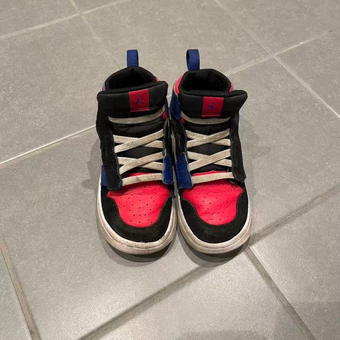 Adidas barnesko i størrelse 26 for unisex. Skoene er svarte med hvite detaljer og har en lett og pustende overdel. Sålen er hvit med godt grep, egnet for aktiv bruk.