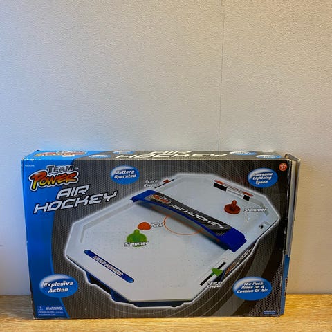 Bordspill med flere spillvarianter inkludert blant annet air hockey. For air hockey må man være tilkoblet strøm. Se bilder. Spillbordet har flere overflater som kan byttes for ulike spillopplevelser. Inkluderer tilbehør, men mangler 2 kjegler til bowling. Rift i netting for oppbevaring av tilbehør. Se bilde.