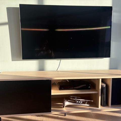 Vegghengt Northern Hifive media/ tvbenk med to hyller og to skap. Kjøpt hus Eske Design til jul 2020 og kun vært i bruk ett sted. I meget god stand, se bilde for merke på topp-plate som eneste anmerkning.