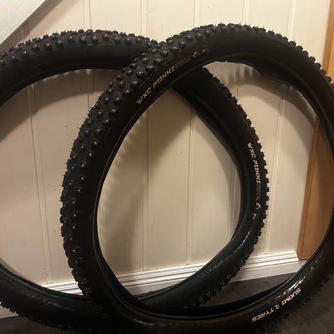 Lite brukte piggdekk selges. Brukt til skoleveien en vinter.