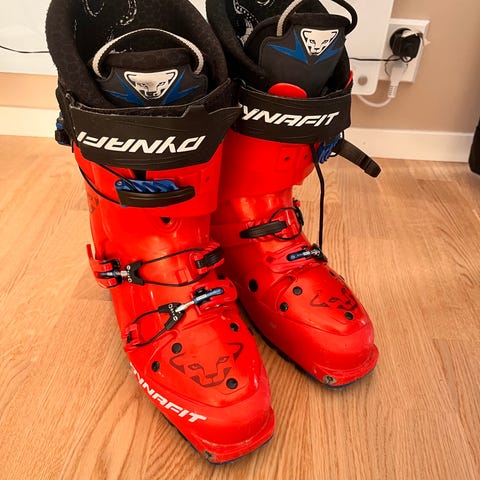 Pent brukte randonee støvler selges da de er litt store for meg. Veldig gode sko og superenkelt å veksle mellom gåmodus og kjøremodus. Åpne øverste klype så er skoen i gåmodus, lukke så er det bare å kjøre på. Støvlene er overraskende stive og gode å kjøre med og veldig komfortable å gå oppover med. En god sko som jeg tenker passer de fleste. Jeg kjøpte skoene pent/lite brukt og har ikke brukt de mye jeg heller, så disse skoene bør holde i mange år til.