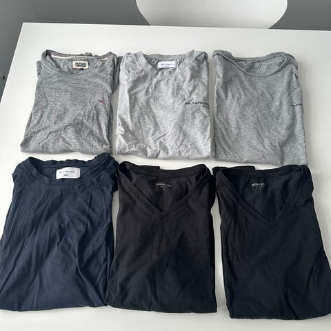 Selger 19 herre t-skjorter samlet til 500kr fordi de ikke blir brukt. Kan selges separat (da kan vi diskutere pris). Alle er pent brukt og de fleste er i størrelse L eller tilsvarer en L. Se bildetekst på hvert bilde for mer info. Må hentes i Lørenskog ☺️