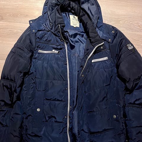 Varm vinterjakke med teddyfor i halve rygg og foran, ikke i ermene.