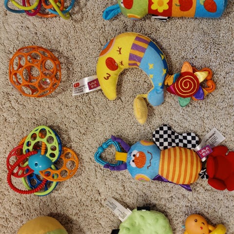 Diverse babyleker i stoff selges samlet. Brukt av ett barn. Kan hentes eller sendes.